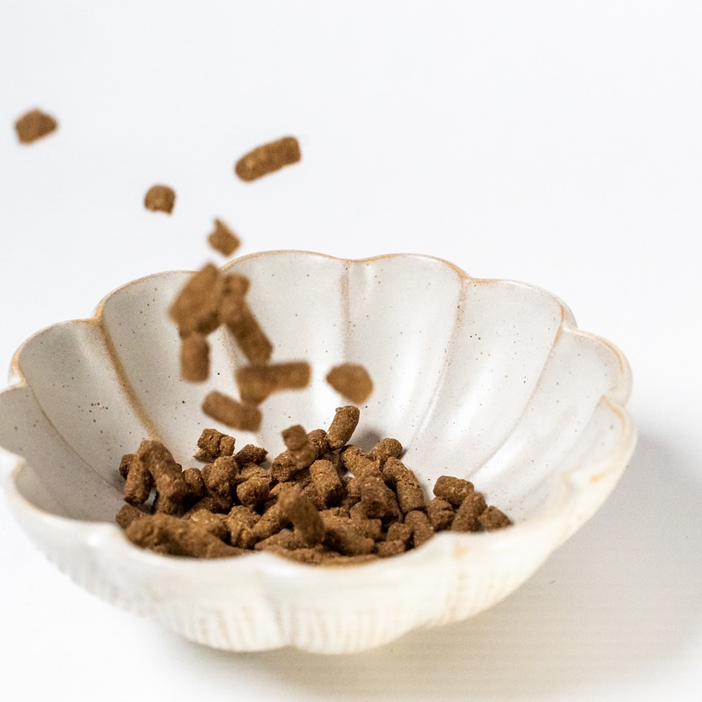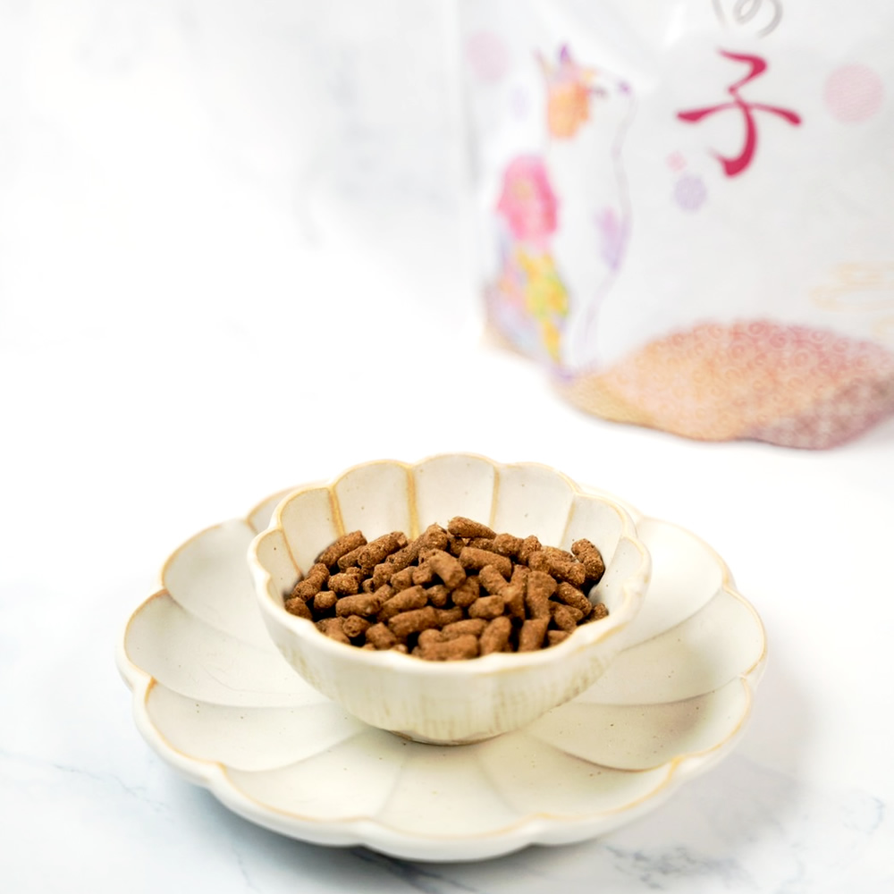 安心・安全な自然由来の原材料を活かすため「味付け」や「匂い付け」といった嗜好性を上げるための風味オイルなどは一切使用せず、FAMICのペットフード製造基準適合確認事業場で猫の栄養学に基づいた栄養設計を行い素材を最大限活かすため低温加熱製法で製造しています。